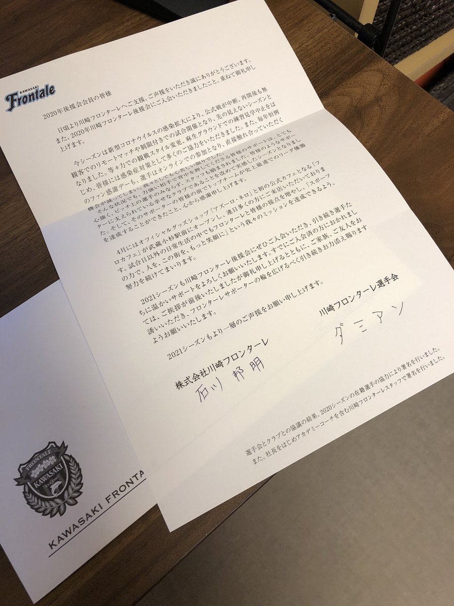 年末の風物詩 川崎フロンターレからの選手 スタッフ直筆お手紙 後援会直筆署名19 まとめ Togetter